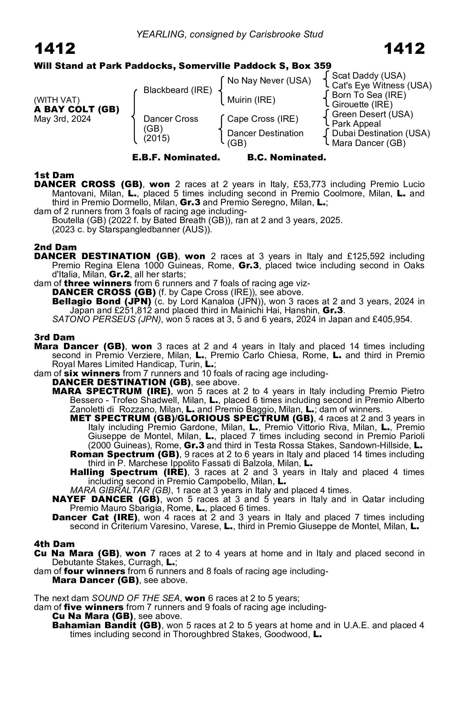 Lot 1412 Tattersalls Yearling Sales Book 3 2025 30 Sept Written By Jane Grassick 2025 sales Jane Grassick